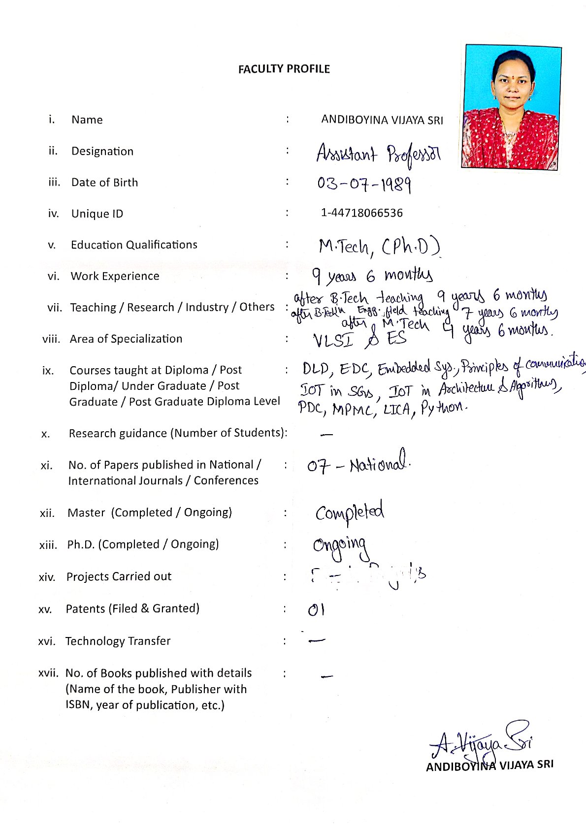 A. VIJAYA SRI Assistant Professor B.Tech, M.Tech