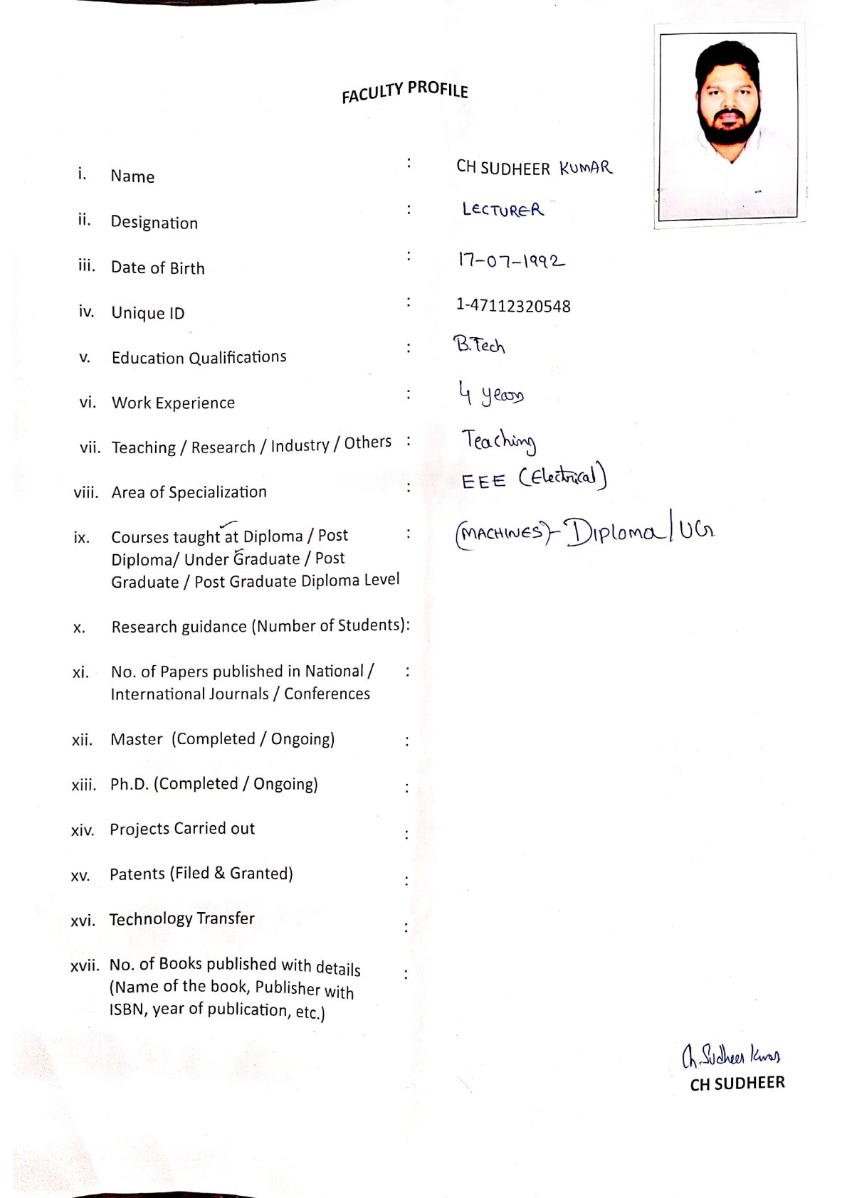 CH Sudheer Lecturer B.Tech, M.BA
